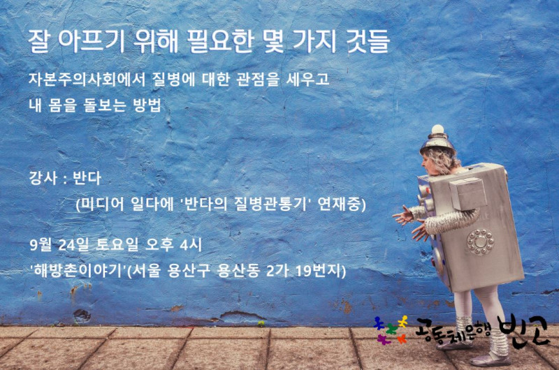 빈고게시판 [건강계 강좌] 9월 24일 토요일 4시 ' 잘 아프기 위해 필요한 몇 가지 것들'