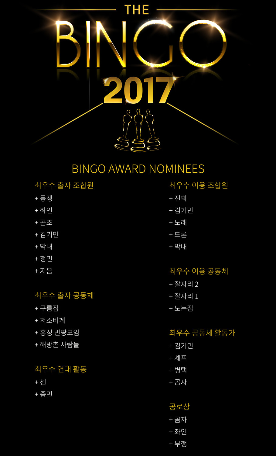 빈고어워드 시상식이 빈고 총회에서 메인 이벤트 중 하나로 격상되어 한 해동안 유별나게 빼어난 조합원들의 활동을 철저하게 짚고 넘어갈 예정입니다.