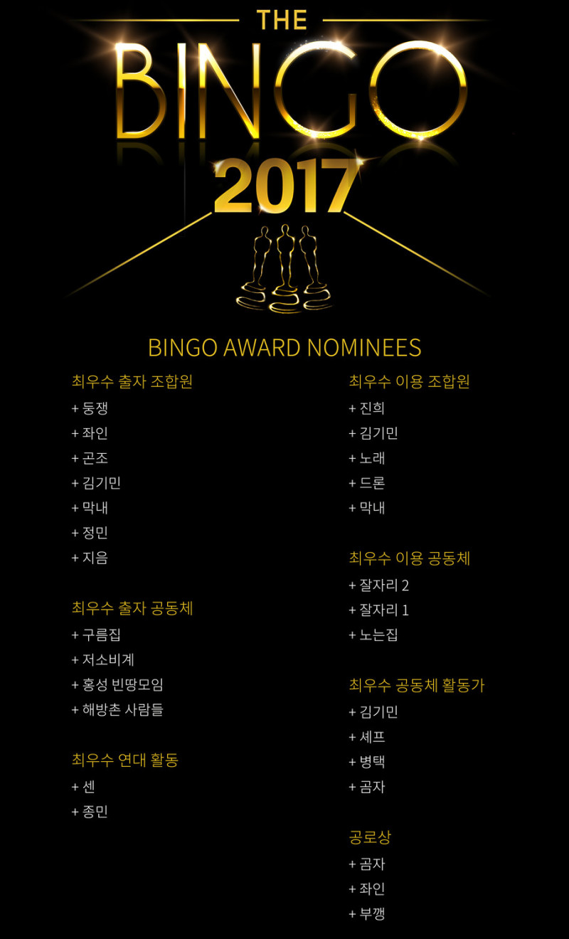 <BINGO AWARD NOMINEES>
