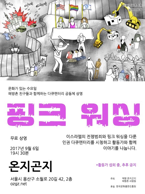 해방촌 사람들과 8월 6일에 '박종철 감독 추모 상영회'했습니다. 9월 6일에는 <핑크 워싱> 상영이 계획되어 있어요