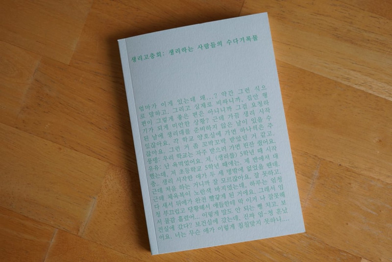 • 전/현 빈마을 사람들이자, 빈고 조합원들이 참여했던 <생리고충회: 생리하는 사람들의 수다기록물> 프로젝트가 성공적으로 텀블벅 모금을 마쳤다고 합니다. 이미 입소문을 통해 화제의 신간으로 주목 받는 <생리고충회>를 빈고 조합원 특가 8,000원(정가 10,000원)에 판매한다고 하니 많이 주문해주세요!