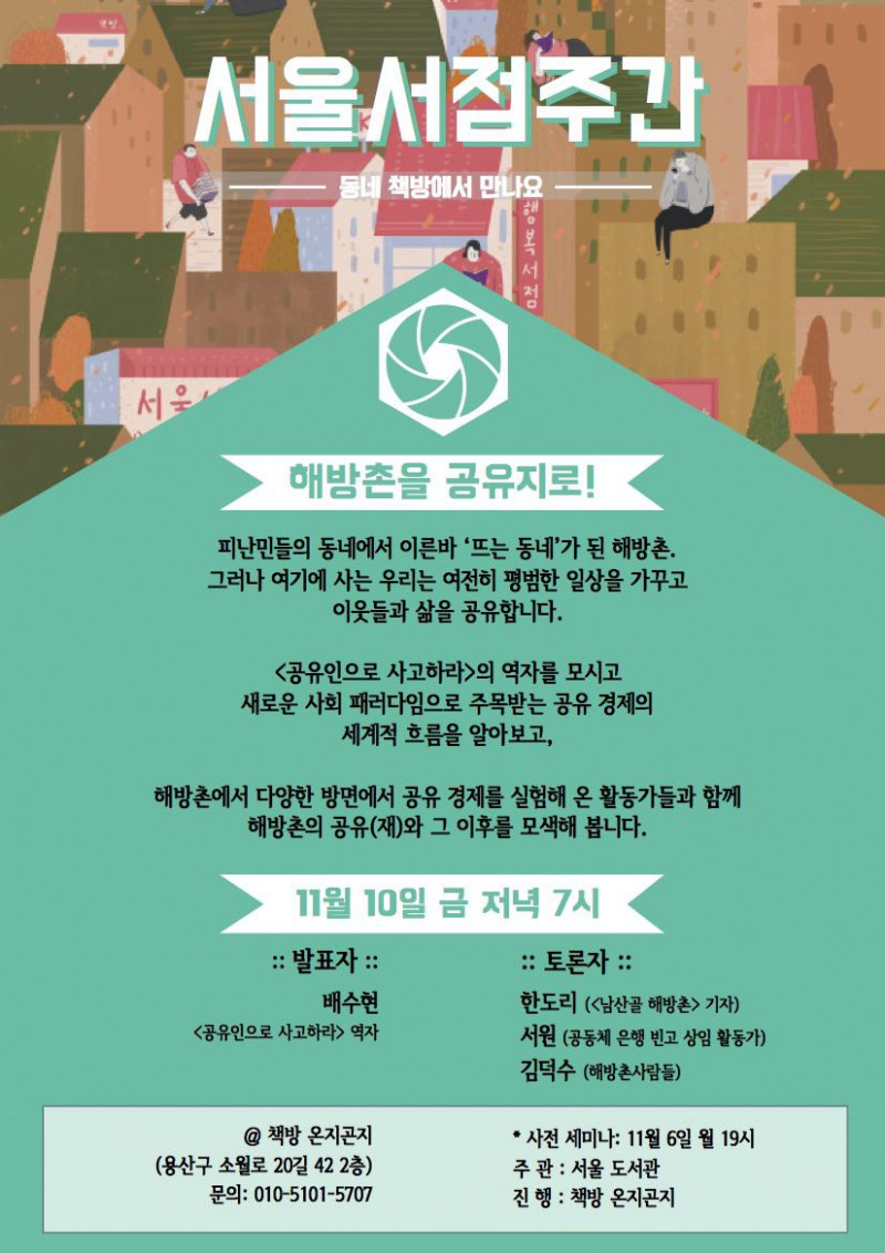 <공유인으로 사고하라>의 역자를 모시고 빈고와 해방촌 활동가들이 함께 토론회를 진행합니다. 서울 도서관에서 주관하는 행사로 빈고 공동체인 책방 온지곤지에서 진행될 예정입니다.