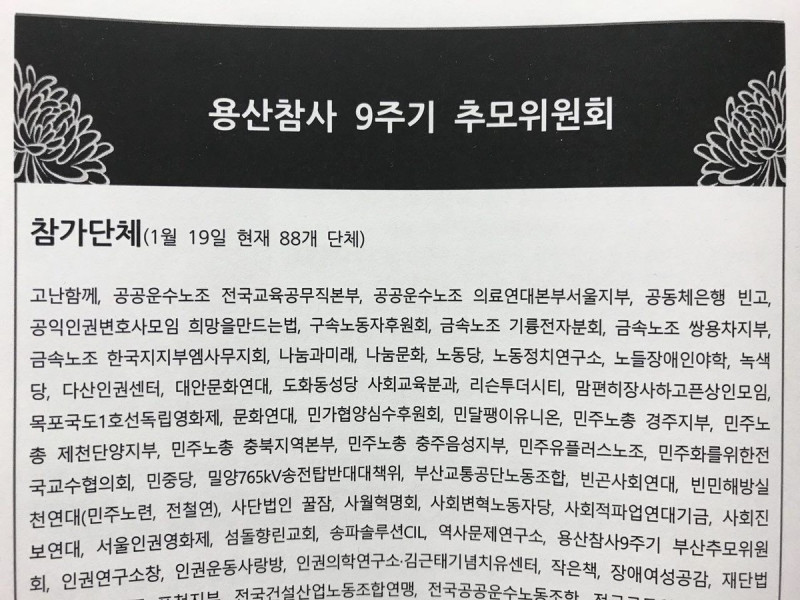 지구분담금: 용산 9주기 추모위원 + <공동정범> 배급위원 참여
