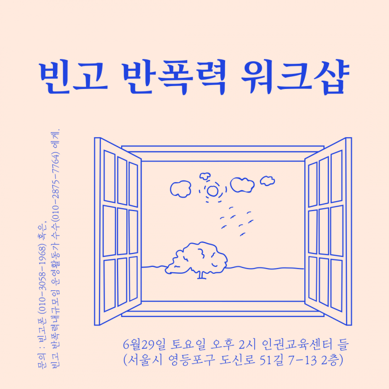 문의 : 빈고폰 (010-3058-1968) 혹은, 빈고 반폭력내규모임 수수(텔레그램 @u_ufeelings )에게.