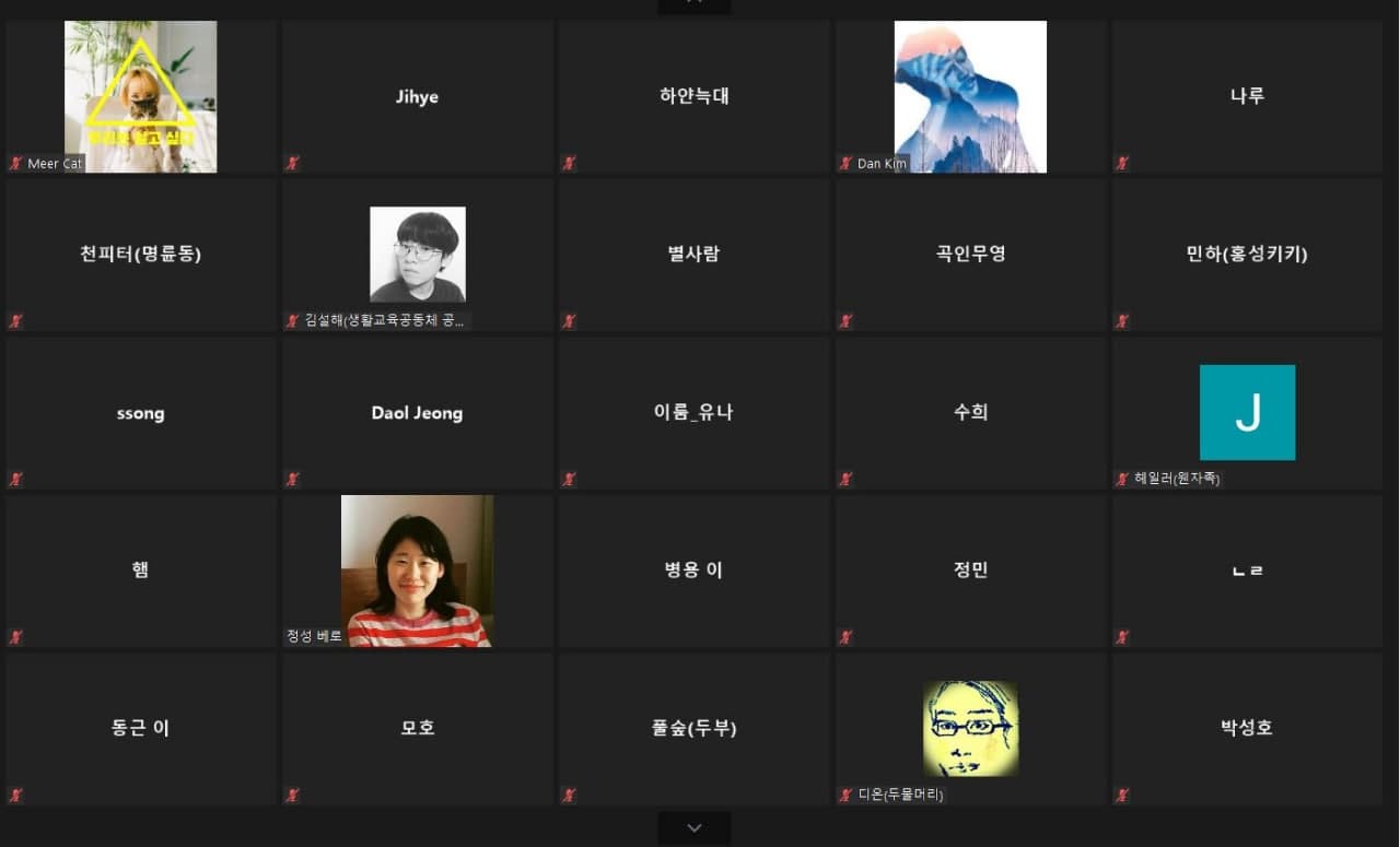(답변)살구 : 2021년 활동계획에 포함 되어 있습니다만 온라인(줌등 활용해서)미팅을 좀더 자주 하자고 계획 세우고 있어요.