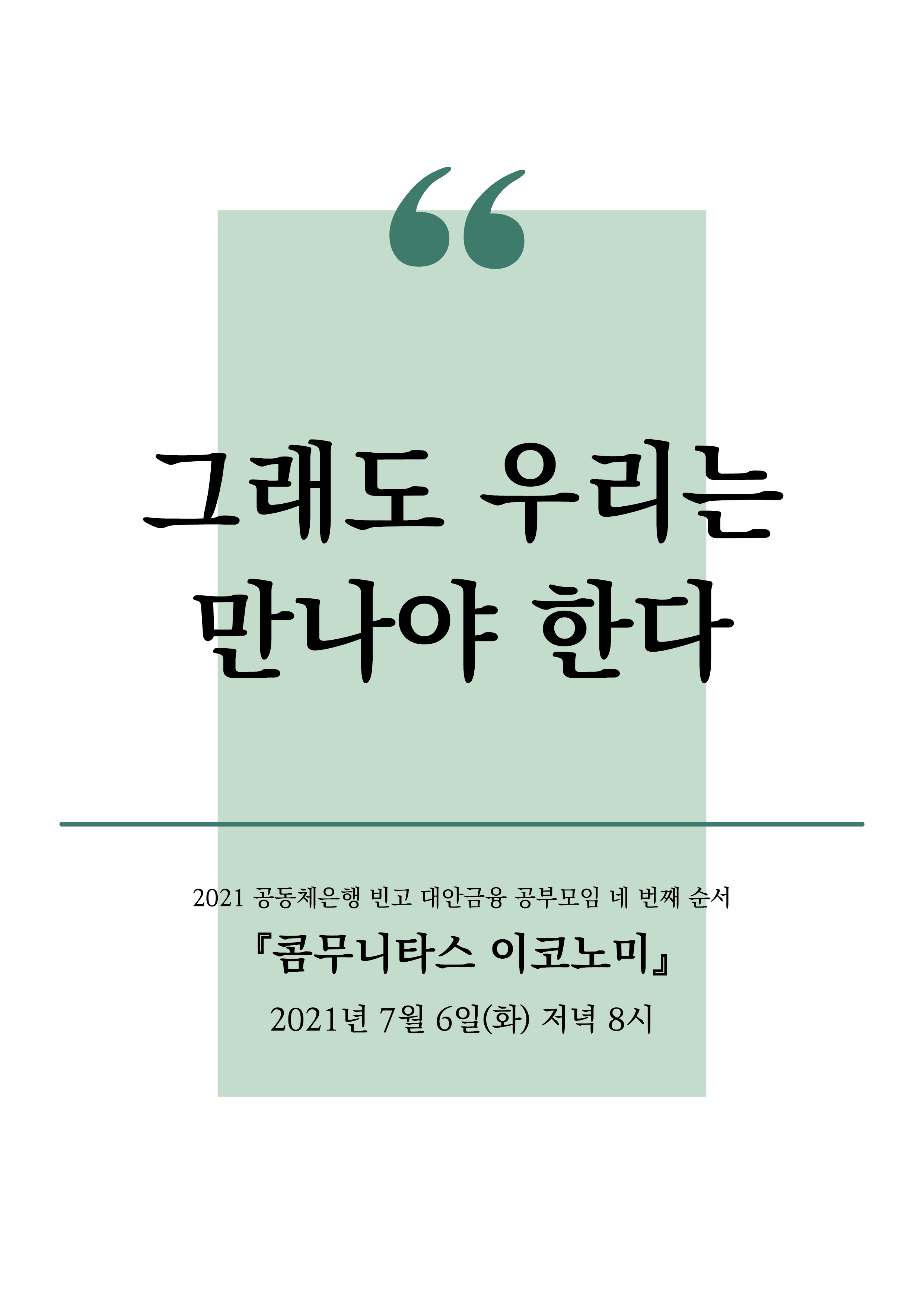 2021 공동체은행 빈고 대안금융 공부모임 네 번째 순서가 다음 주 화요일 밤에 진행됩니다.