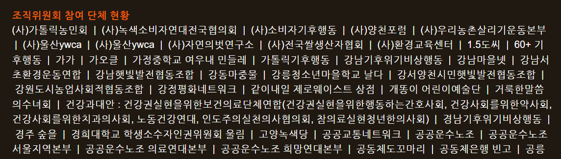 924기후정의행진 홈페이지에 보시면 조직위원회에 공동체은행 빈고의 이름도 있답니다(아래 캡쳐 참조!).:D