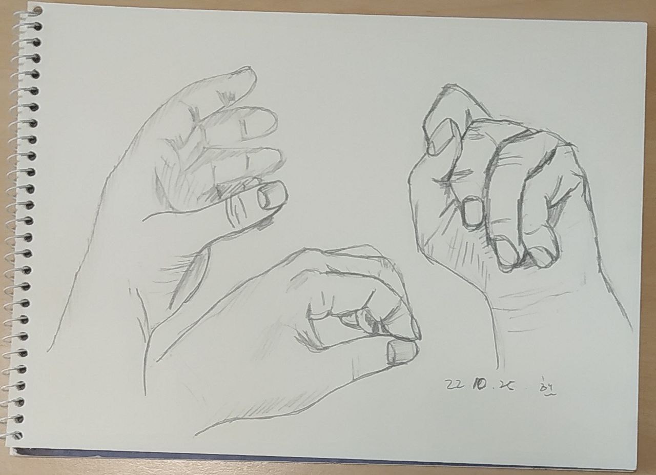 삐뚤빼뚤해도 왼손으로 그린 오른손 그림도 좋을 거 같아요!!