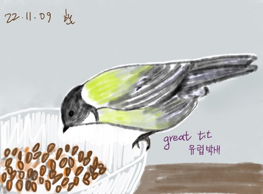 오! 유럽 박새군요. 이름도 붙여주세요. 저 햄님이 이 새 그릴 거라고 짐작했어요.^^