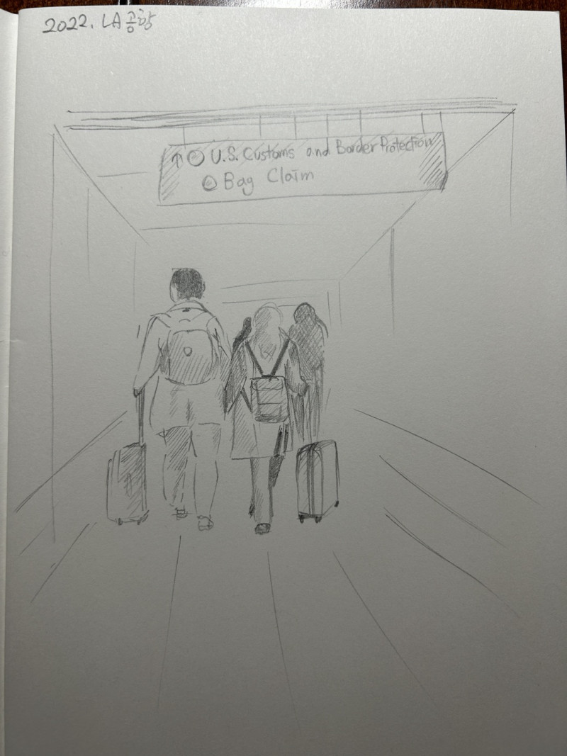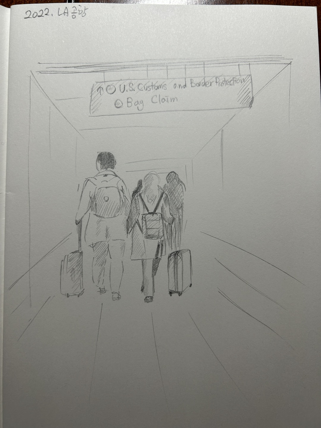 입국심사 받고 나서 공항 밖으로 빠져나가는 길에 찍은 사진을 보고 그렸는데 다음번에는 현장에서 그려보고 싶어요!