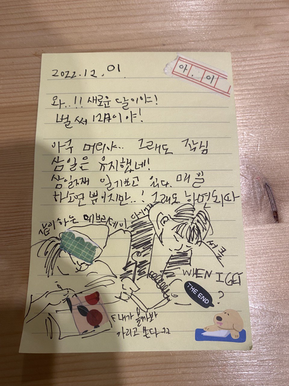 일 하는 곳에서, 3일 전부터 같이 다이어리를 쓰고 있어요.