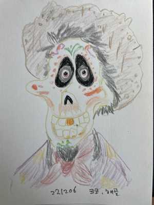 아무튼 그래서 오늘은 산안토니오 미술관에서 만난 해골엄마와 아기를 그려봤어요.