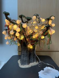 집에 있는 바오밥나무 모형에 트리 장식해줬어요. 다이소에서 전구 5천원, 색끈 천원. 6천원짜리 크리스마스 트리입니다.