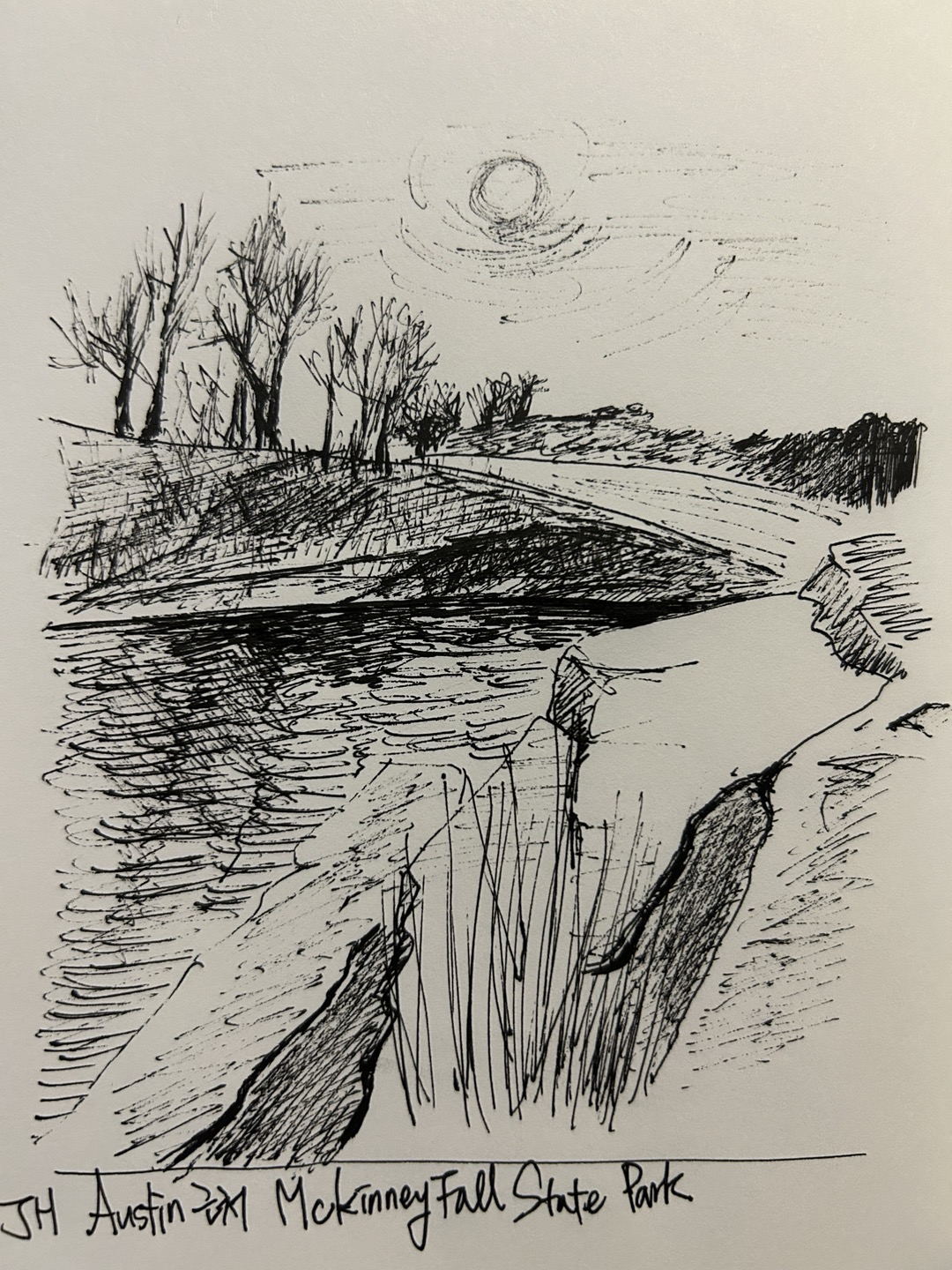 제가 오늘 그린 그림은 오스틴 근처에 있는 작은 폭포가 있는 주립공원이에요.