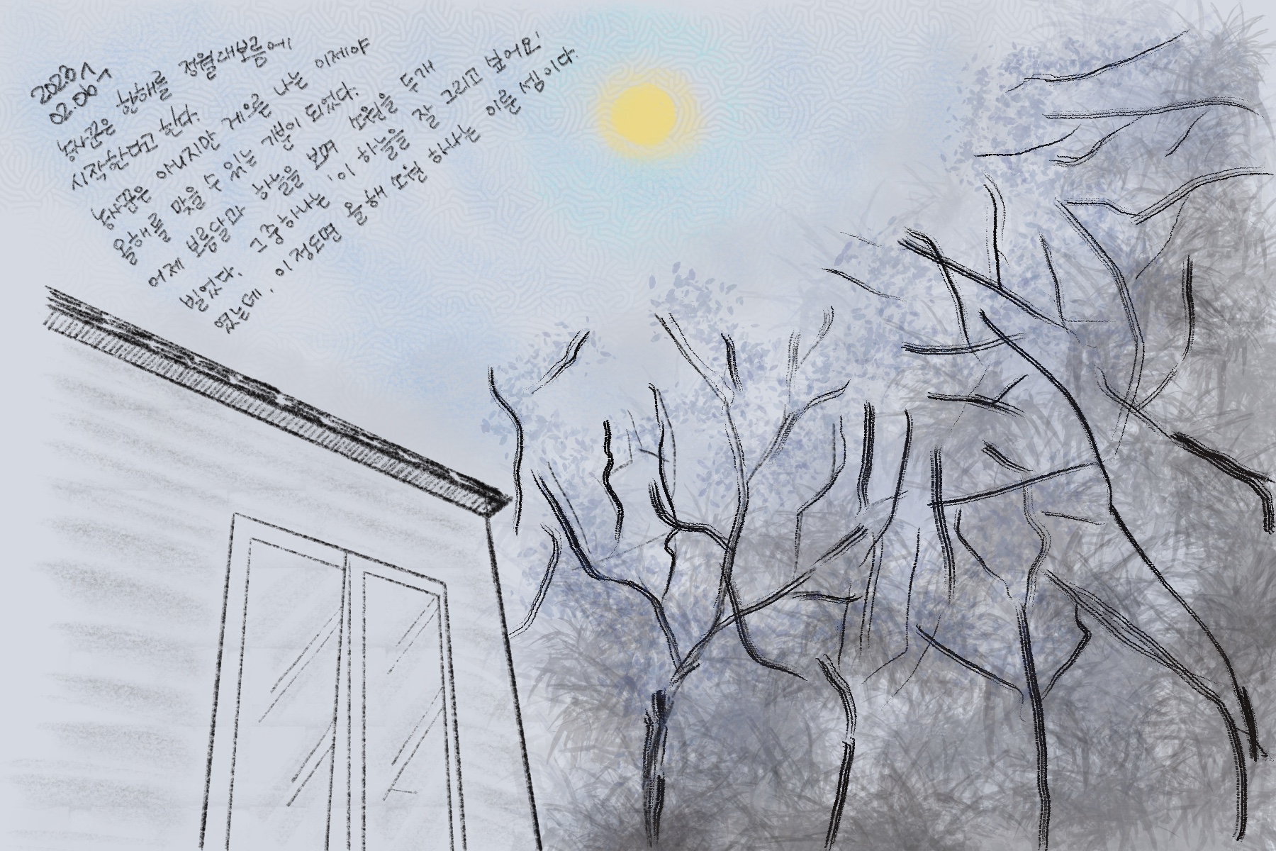 밖의 나무들이 달을 찬양하는 거 같은 그림이네요.ㅎ
