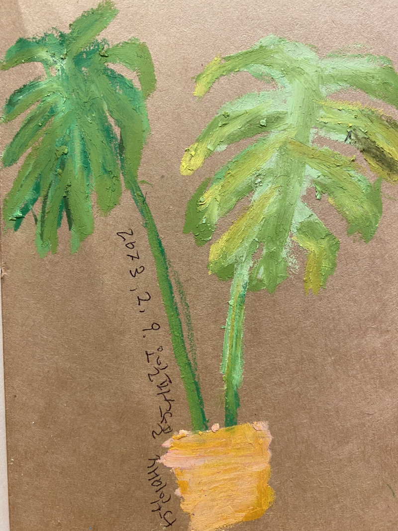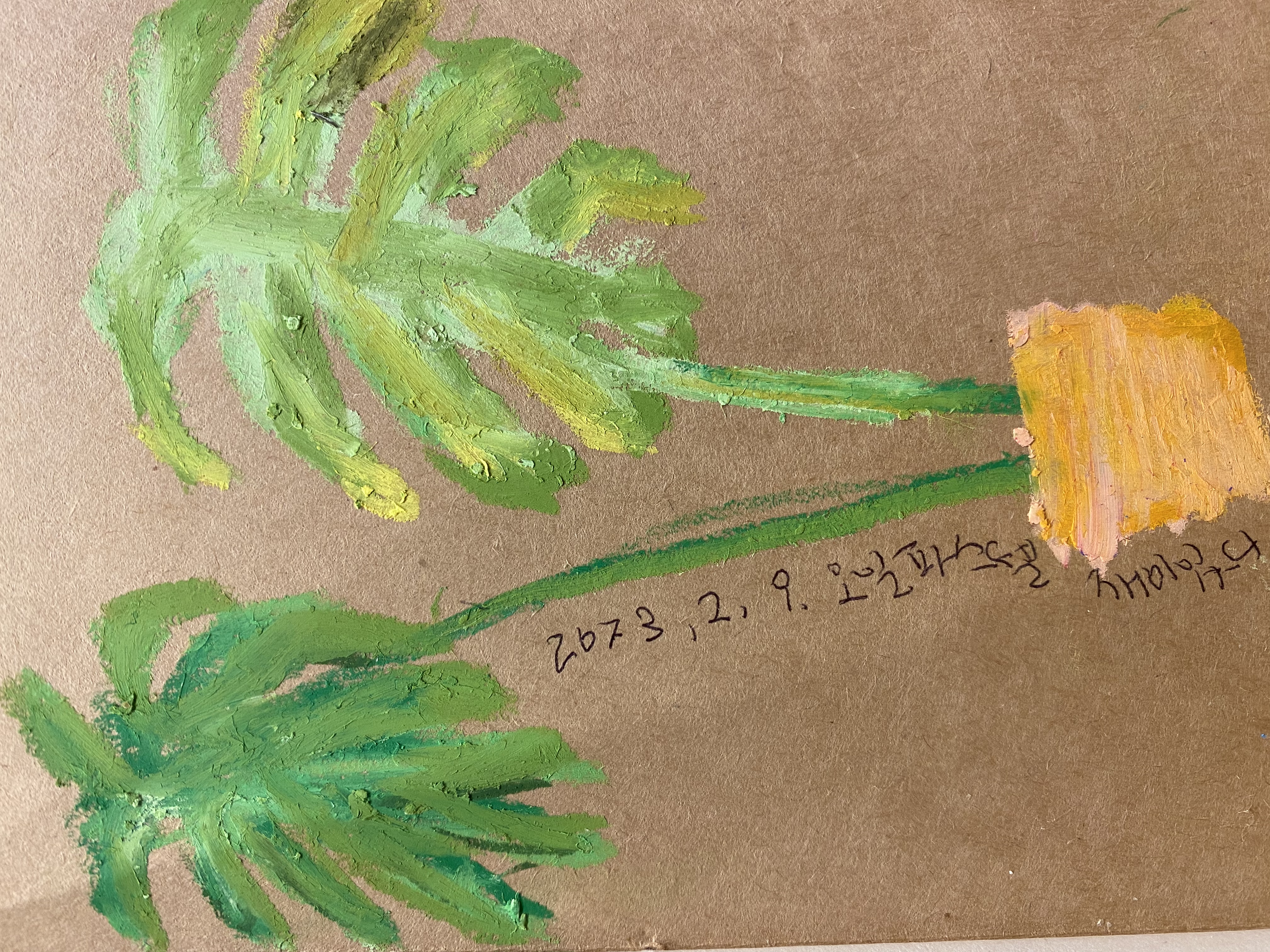 얼마 전에 친구의 오일파스텔로 그려본 몬스테라 그림으로 목요일 그림일기를 대신합니다🤩