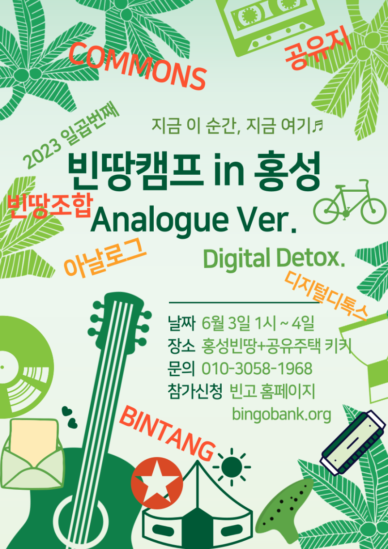 이번 빈땅캠프는 아날로그 컨셉으로 진행되며, 1박 2일 동안의 디지털 디톡스를 지향합니다.