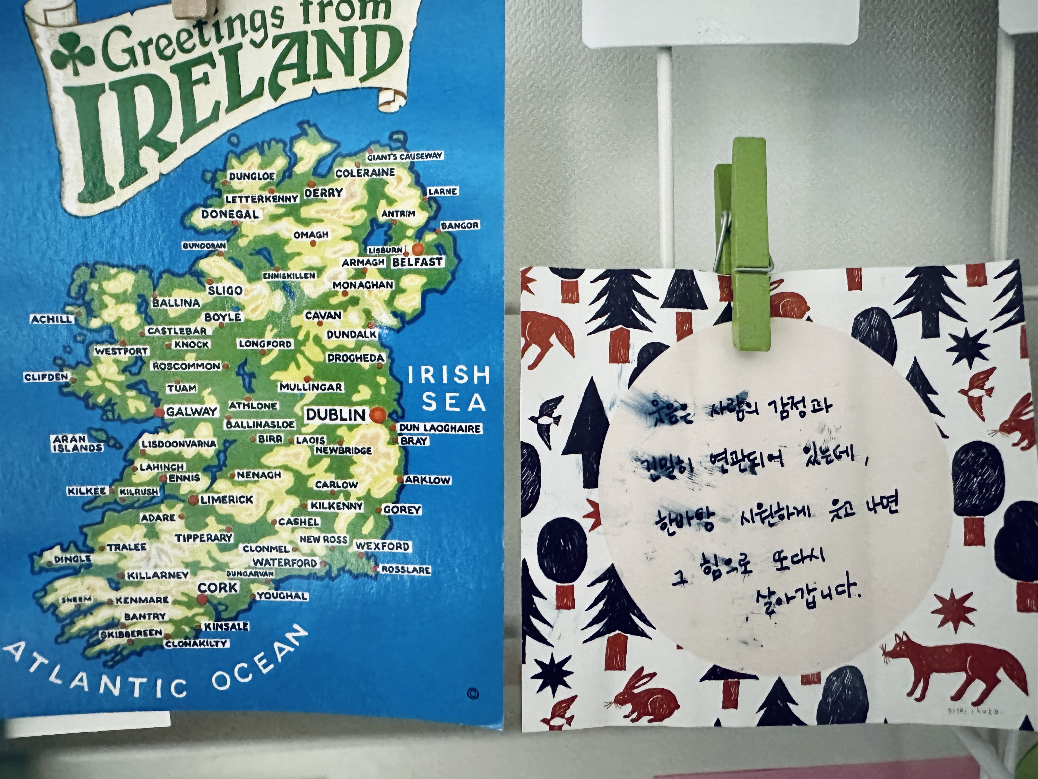 선물받은 여행엽서와 산책길 보물주머니에 찾은 쪽지에요.
