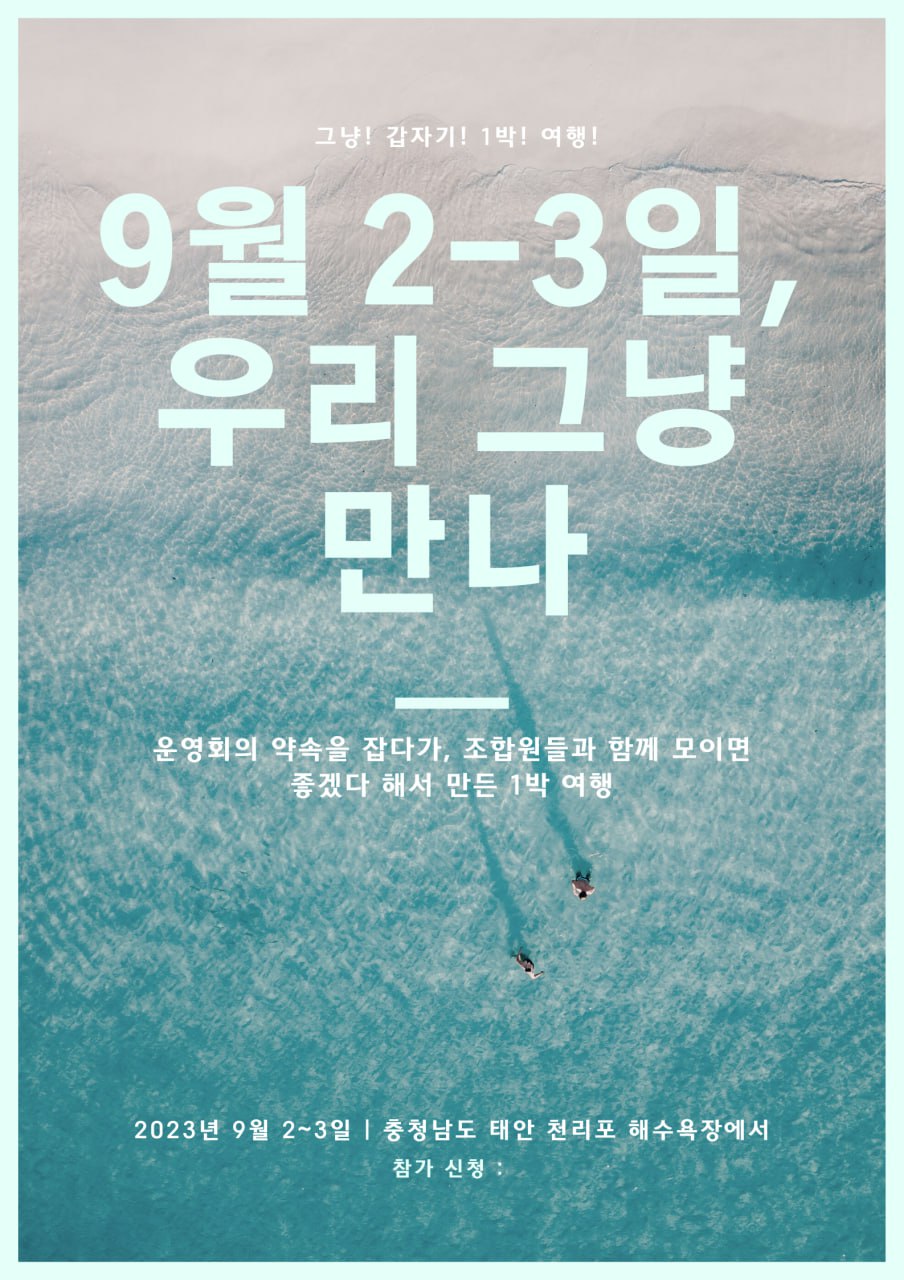 9월 2~3일 충남 태안 천리포에서 조합원 모임을 1박2일로 갖기로 했습니다.