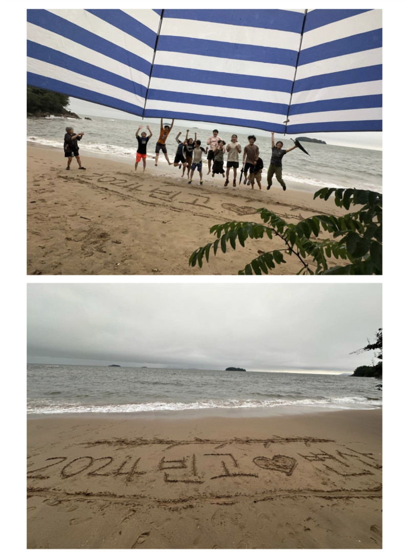 모두가 하나둘 도착한 뒤 터미널 근처 시장에서 밥을 먹고 장을 봤습니다. 바다가 살고 있는 집은 터미널에서 좀 거리가 멀었습니다. 바다의 부모님이 손수 지은 집은 넓고 좋았습니다. 태풍이 지나가는 중이었는데 빈고 운영회의를 얼른 끝내고 바다로 향했습니다. 늦은 시간이라 관리원의 제재를 받아 바다가 마을 사람들만 아는 숨겨진 해안으로 안내해줬습니다. 히든 해변 같은 느낌의 멋진 곳에서 몇몇은 물놀이를 즐겼고 몇몇은 몰아치는 파도와 신난 친구들을 바라보았습니다.