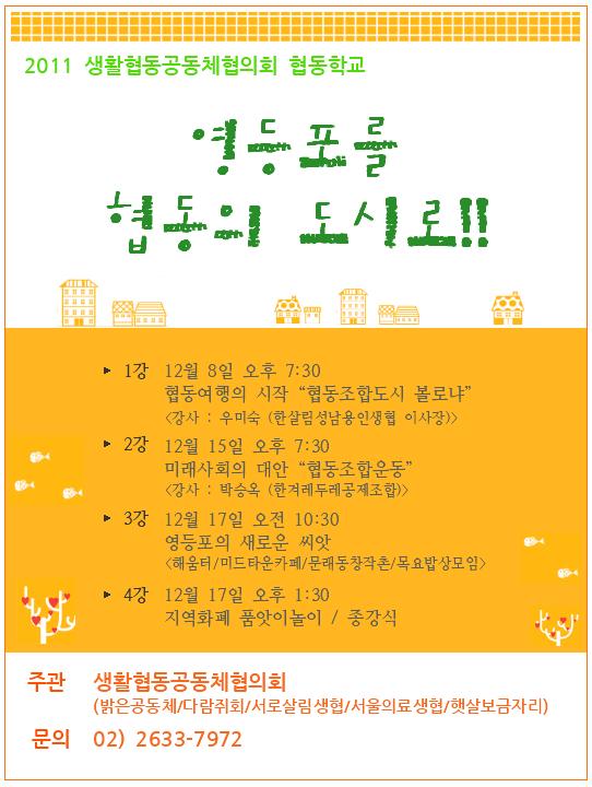 영등포 생활협동공동체협의회(다람쥐회가 포함되어 있는)에서 협동학교를 합니다.