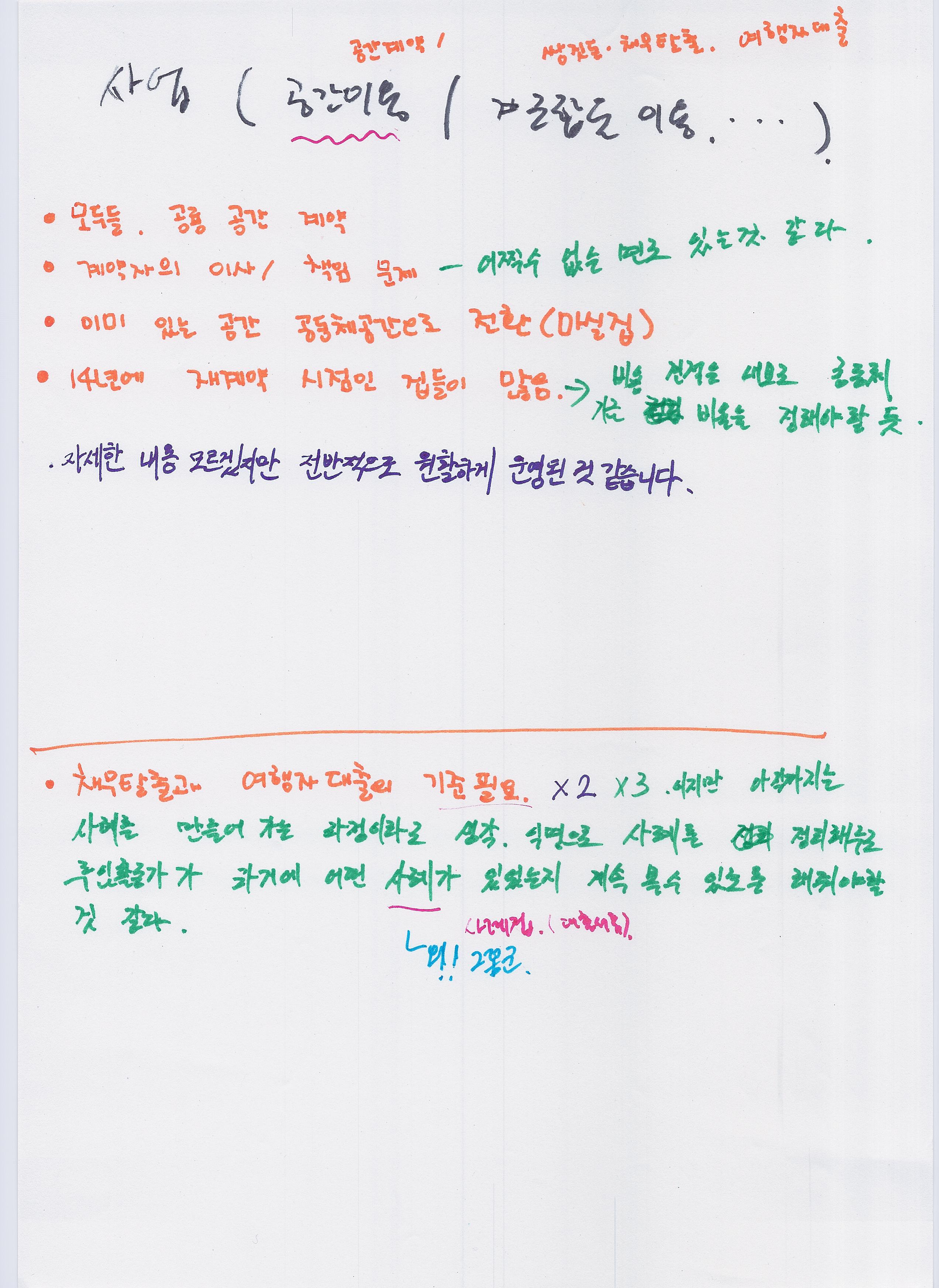 - 채무탈출과 여행자 대출의 기준 필요 (x2, x3.이지만 아직까지는 사례를 만들어 가는 과정이라고 생각. 익명으로 사례를 정리해주고 후임활동가가 과거에 어떤 사례가 있었는지 계속 볼 수 있도록 해줘야할 것 같다.)