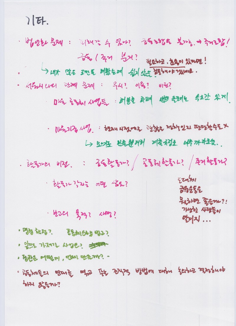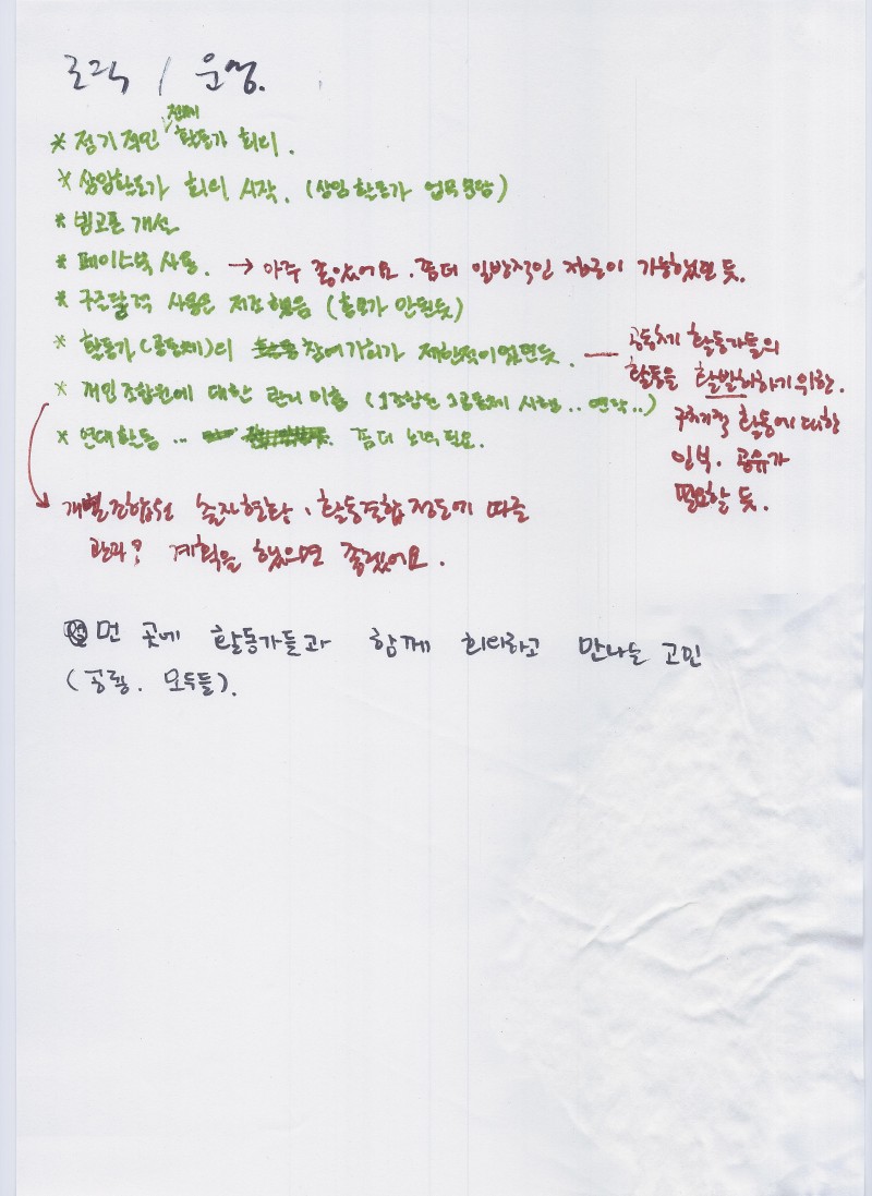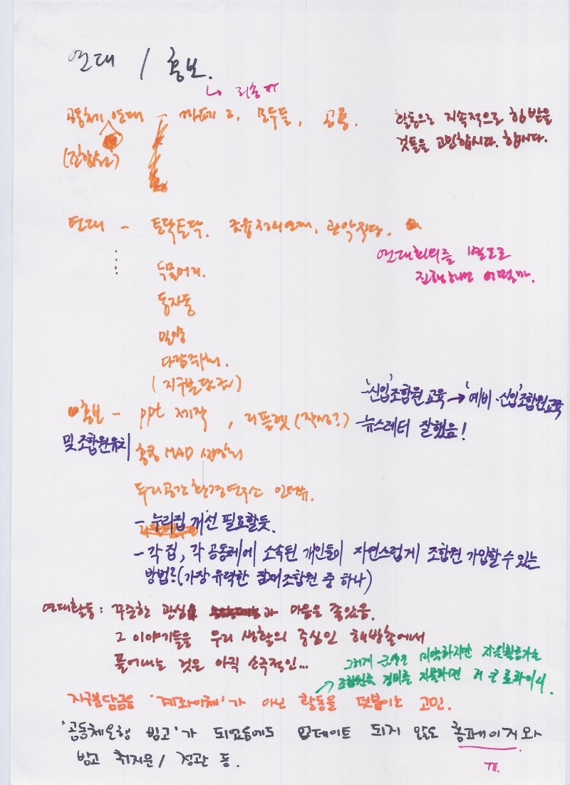- 연대활동 : 꾸준한 관심과 마음은 좋았음. 그 이야기들을 우리 생활의 중심인 해방촌에서 풀어내는 것은 아직 소극적인..