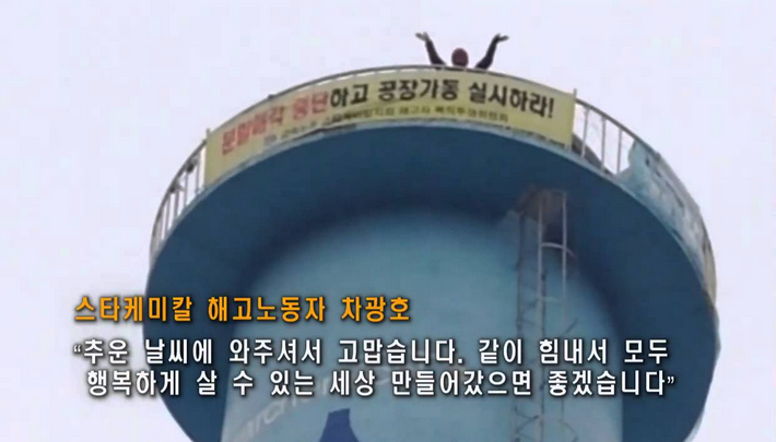 올라가신 분과 그 밑에서 같이 투쟁하시는 분들은 벌금까지 내시게 됐고