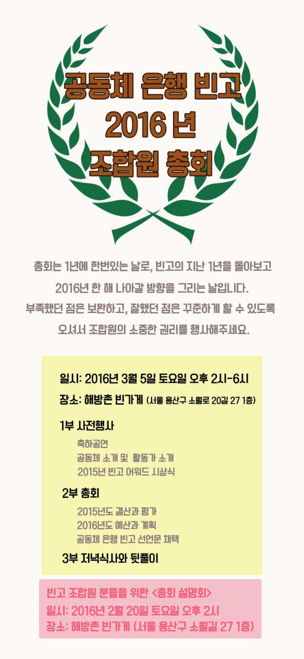 3월 5일(토), 공동체은행 빈고의 2016년 총회가 열립니다!