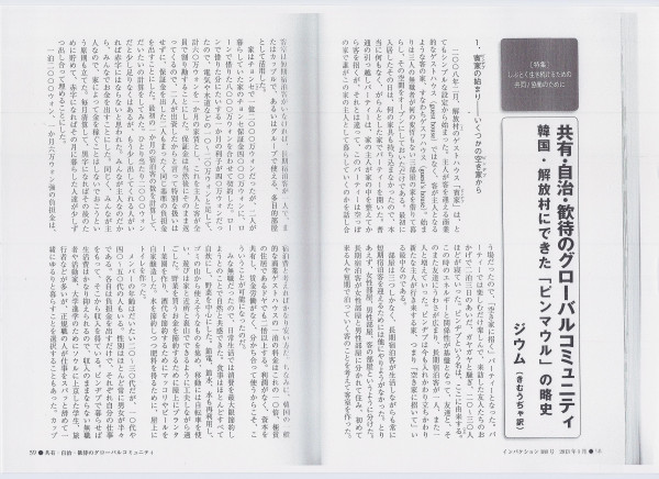 2013년에 일본 사회운동 잡지 <임팩션 IMPACTION>에서 기고 요청이 있어서 작성된 글입니다.