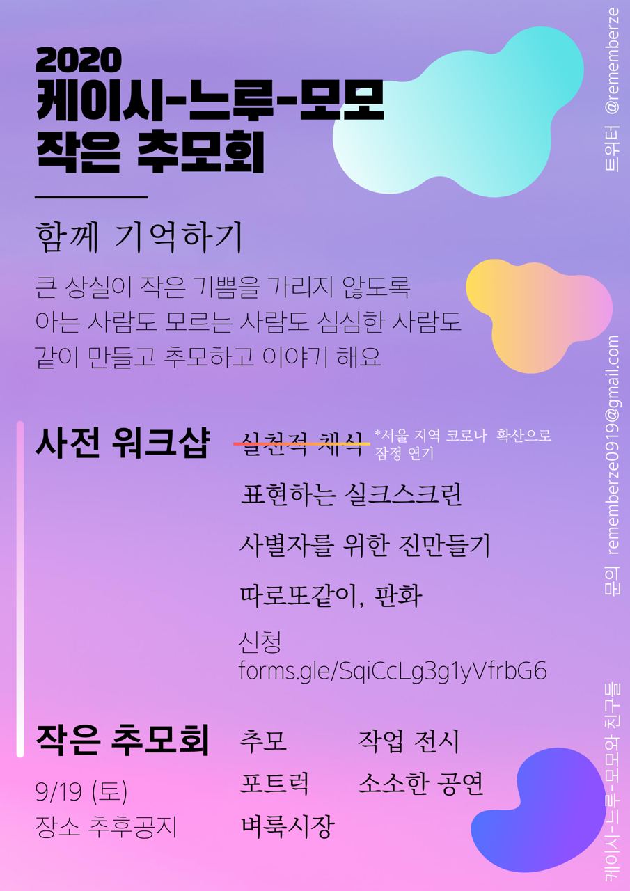 추모회까지 후원 계좌를 열고 워크숍 결과물을 판매해 모은 후원금은 <무지개돌봄>에 기부할 예정입니다.