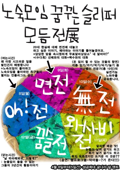 꿈꾸는 슬리퍼, '꿈슬'의 3년간의 활동을 정리하는 전시회였는데, 목요일까지 열린답니다.
