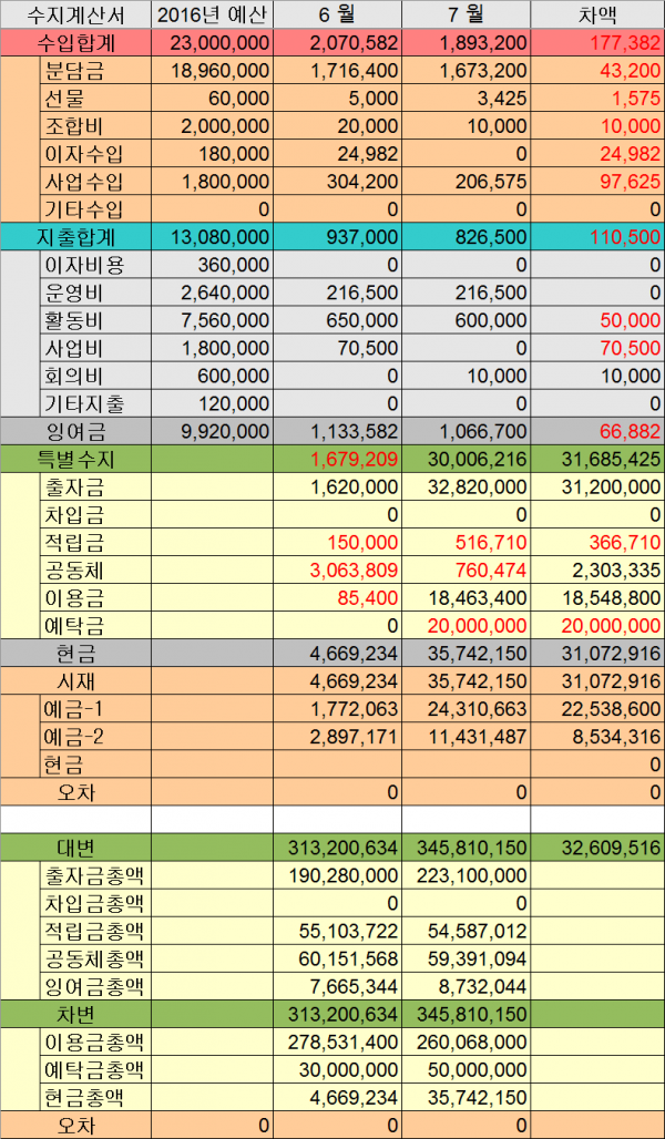 1. 현황 보고 (2016.07.01 ~ 07.31)