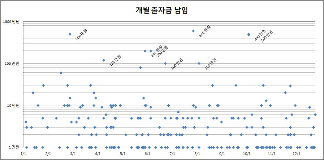 * 100만원 이상, 10만원 이상 출자자의 비중은 늘어나고 있다.