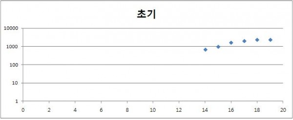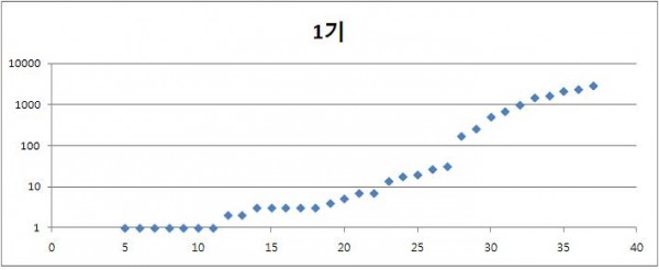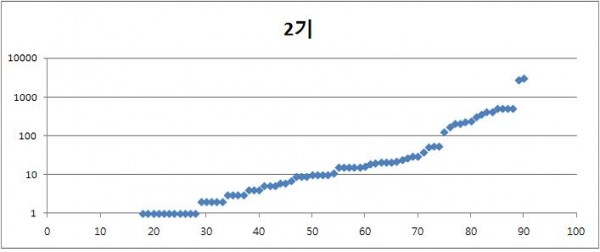 * 세로축이 1, 10, 100, 1000만원으로 늘어나는 그래프. 가로축은 조합원수.