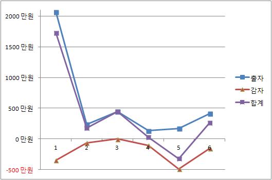 | 옛장투 | -76 | -30 | 16 | 5 | -21 | 4 | -102 |