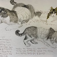 와~ 생각해보니 작심삼일을 넘겼습니다!빈고 소풍 마치고 18일부터 그림일기 그리기기 시작했으니,벌써 5일차네요!이렇게 게시판에 같이 올리는 것도 오늘이 세 번째이고요~~무언갈 이렇게 꾸준히(?) 3일이상 한 것이 오랜만이라 기쁩니다!오늘 그림은 우리집에 잠시 요양 온 밭냥이 임자입니다~~
