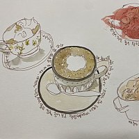 사진을 잘 못 찍는데, 요즘은 ‘나중에 그림일기 그려야지!’하고 일단 찍고 봅니다.오늘은 그렇게 찍은 음식 사진 중에 골라서 그려봤어요.겨울이 오니 겨울잠만 자고 싶어서 누워서 그리다가 잠옷 소매로 건드렸는데,나름대로 진짜 김치국물 번진거 같아서 웃기고 맘에 들어요.늦은 겨울 맞나 싶게 덥고. 밤은 낮에 비하면 겨울이구나 싶어요.건강하게 내일도…!!! -