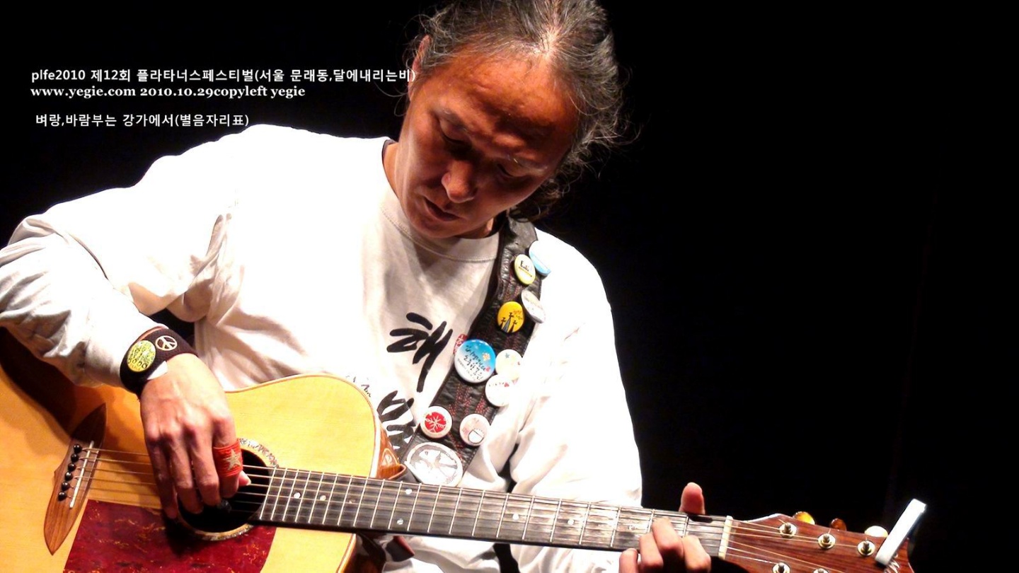 별음자리표님은 이라크 전쟁이 시작될 때 즈음 거리의 가수가 되셨어요. 노래하면서 평화행동을 조직하고 그러셨죠. 반전평화를 외치는 곳 어디라도 찾아가서 노랫품을 팔으셨고 권리를 위해 싸우는 사람들이 있는 곳이라면 또 어디든 찾아가서 평화를 노래하셨어요.